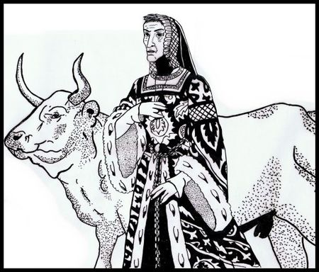 Am Ende war die Stierfürstin auf den ersten Blick eine klein und schmächtig wirkende Magnatin Anfang der Siebzig, mit einem Gesicht so kalt, herb und kantig, dass sie wohl selbst in ihren Blütejahren niemals von den Troubadours besungen wurde. Der stechende Blick ihrer dunklen Augen über der scharfgeschnittenen Nase verriet schon ihre Klug- und Verschlagenheit gleichermaßen, wobei sie zudem eine derartige Aura von Selbstsicherheit, Standesbewußtsein und Alterswissen ausstrahlte, dass sich empfindsame Menschen in ihrer Gegenwart oft unwohl fühlten.