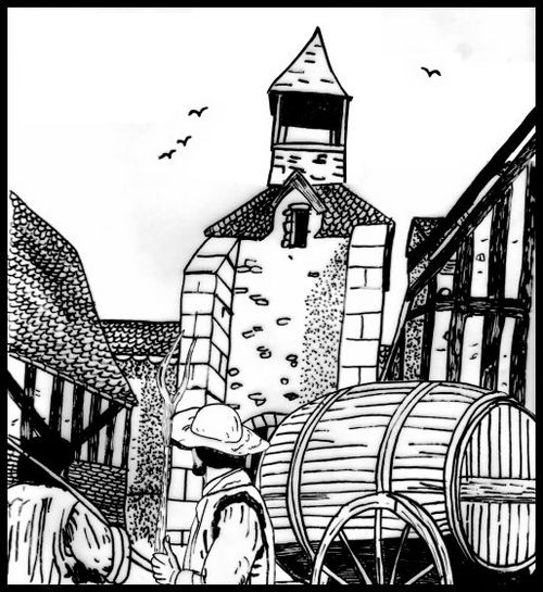 Der massiv gebaute Tempel dient den Bewohnern Alinas seither als letzter Rückzugsort, wenn das Dorf angegriffen wird - zuletzt geschehen im Hochsommer 1033 BF, als man ein in Wahrheit von Graf Brandil höchstselbst ausgeschicktes Aufgebot für ein plünderndes Söldlingsheer hielt. Dass der Storch dennoch nur als Schildhalter, nicht aber als Wappenvogel von Alina fungiert, liegt daran, dass dieser Platz bereits von der Elster eingenommen wird, die auf den Feldern rings um Alina tatsächlich auffällig häufig zu sehen und zu hören ist. Die Elster (tulam. El'Saksağan) war auch der Beiname des Junkers von Alina - nach ihm wurde auch die einzige Schänke des Dorfes benannt.