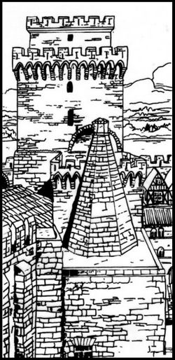 Von der Oberstadt kommend, nähert man sich dem Almadinpalast über den Drachenhof, so genannt wegen eines imposanten Bodenmosaiks, das einen furchterregenden, erschreckend lebensecht scheinenden Drachen darstellt. Auf den Hof fällt tagsüber auch der Schatten des Rashidsturms, durch seine Geschichte ebenso unheimlich wie das Drachenbild. Von diesem Turm aus rief Rashid ibn Harabal, der Sohn des letzten Emirs von Al'Mada, seine Getreuen zum Kampf gegen die Bosparaner, und hier setzte er auch seinem Leben selbst ein Ende, als sie scheiterten. Schon manches noch so brave Pferd hat an diesem Ort gescheut, und auch der menschliche Besucher mag von Drache und Turm ebenso beeindruckt sein wie von den imposanten Mauern und der hohen Kuppel des Palastes selbst.