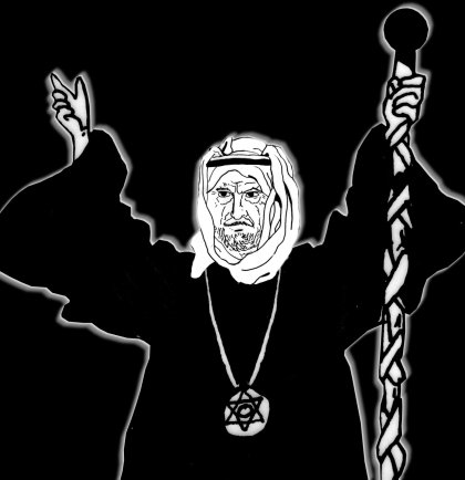 Tagsüber kreise der zaubermächtige El'Ghulshach in der Gestalt eines kapitalen Khomgeiers über seinem Land und nur in der Nacht, bei bestimmten Sternenkonstellationen sei er in der Lage, seine frühere menschliche Gestalt anzunehmen, wobei sein Gesicht mit der markanten,schnabelähnlichen Raubvogelnase einem Geierschädel immer ähnlicher werde.