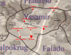 Nördlich von Yasamir, beim Weiler Barancavito - einer nach Baron Vito Rothbrandt benannten Klamm - befinden sich die Grundmauern einer alten Befestigung aus der Zeit des Alten Reiches. Sie ist allenthalben nur als Alte Horasfestung bekannt ist und wird an Feiertagen als Freilichttheater und Kulisse für diverse Darbietungen von Schauspielern und Sängern benutzt. Der Weiler ist wie Campopiedra nur eine Ansammlung von wenigen Katen. Letzterer ist bekannt für seinen Valposella und diverse andere Schnäpse aus Heidebeeren. Für die Gesamteinwohnerzahl der Region scheinen die Ortschaften insgesamt recht klein, doch werden die Behausungen, die es um jeden der namensgebenden Orte gibt, in den Steuerbüchern nicht zu diesem selbst gezählt. Eher denkt man hier in Gutshöfen und deren Umland, zumal die kleineren Orte ohnehin über keine gemeinsam genutzten Gebäude verfügen.