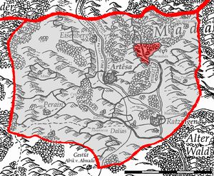 Das Caballerogut Gurnabán befindet sich im rahjawärtigen Teil der Baronie Artésa. Es liegt nahe der selben Bruchkante zwischen endendem Eisenwald und beginnendem Yaquirtal wie das Städtchen Artésa. Tatsächlich ist der Anstieg des Geländes sogar so stark, dass es keinen für Karren oder auch nur Packtiere begehbaren Weg hinauf in die Madahöhen gibt und der Bach Urmil hatte nie die Kraft, sich hier eine Klamm zu graben, sondern stürzt als schmales, silbernes Band über die steinerne Kante. So liegt das Gut zwar geschützt, aber auch abseits aller Handelswege.