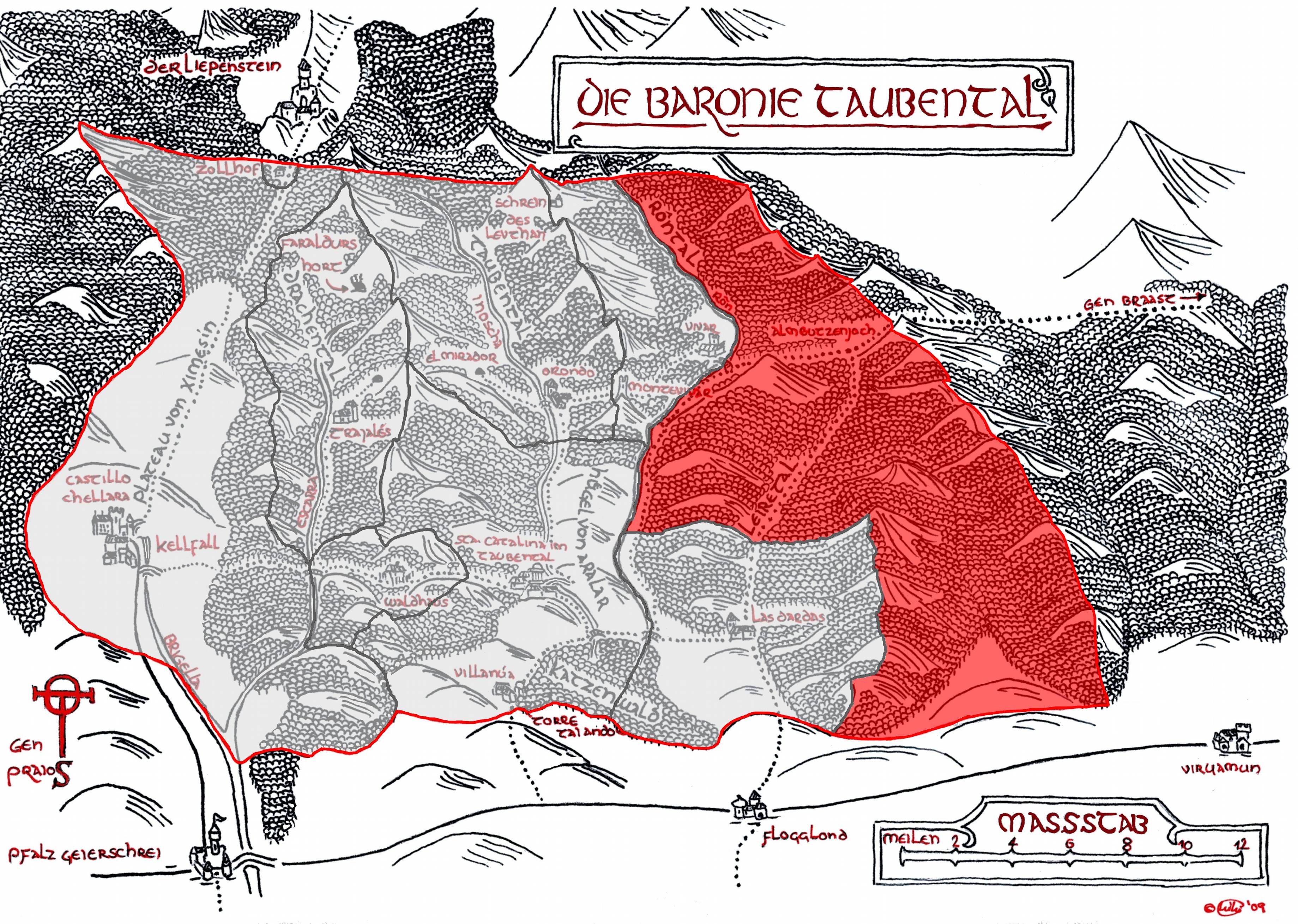Freiherrlich Altos (rot) in der Baronie Taubental (grau).