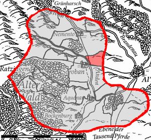 Die Lande Retosruhs im Andental estrecken sich nördlich der königlichen Weinstraße vom linken Flussufer bis in jene Hügel, hinter denen die Stadtmark Punin beginnt. In Norden liegen die Eigengüter der Nementoer Barone benachbart, im Süden und Westen das Landjunkergut Sorobán.