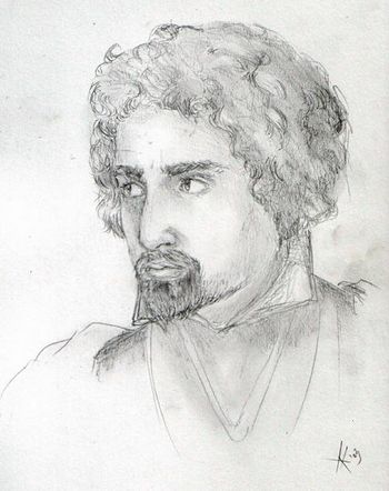 Die vergleichsweise feinen Gesichtszüge hingegen verraten nur allzu deutlich das tulamidische Erbe des Hauses Aranjuez: dichtes, schwarzgelocktes Haupthaar (mit in den letzten Jahren einem Hauch von Grau an den Schläfen, wo seit vielen Jahren der allzu oft getragene Helm scheuert), braune Augen unter langen, dunklen Wimpern und eine leicht gekrümmte Nase, dazu der braune Teint.