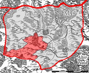 Größte Ortschaft der Dominie ist Fels im Katraguatal mit mehr als 550 Einwohnern. Über dem Ort thront das gleichnamige Castillo auf einem fast 30 Schritt hohen Brocken aus rotem Granit, dem Gestein, welches auch den in der Ferne steil abfallenden Talhängen ihre Farbe verleiht. Der Granit wird in einem Steinbruch unweit des Ortes abgebaut. Das Tal selbst ist recht trocken; die Quelle, die im Ort hervorsprudelt, ist die einzige größere in weitem Umfeld. So wird nur am Talgrund Ackerbau für den Eigenbedarf betrieben, während darüber Pferde und andere Nutztiere in dem von rotem Mohn und anderen Wildblumen gefärbten Grasland weiden. An den Steilhängen suchen Ziegen nach kärglicher Nahrung unter den zahlreichen Olivenbäumen, die ihre Wurzeln in den steinigen Grund graben. Da das Castillo nicht mit Wasser aus der Quelle zu versorgen wäre, sollte der Ort trotz der umgebenden Mauer gestürmt werden, ließen die Lindholz eine prachtvolle Zisterne in das rote Gestein treiben. Auf dem Castillo findet sich auch ein kleiner Rondratempel, während die Einwohner zu Ehren der Peraine im Ort selbst einen Schrein errichtet haben.