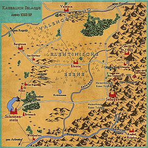 Durch die derzeitige Vogtin des Reiches jedoch - der lange Zeit für ihre große Frömmigkeit bekannten bosquirischen Jungfer Praiosmin von Elenta - ist das Reichslehen in Verruf geraten und wird von der Magnatenschaft Almadas argwöhnisch beäugt. Nicht nur wegen Domna Praiosmins vewerflicher Liaison mit ihrem einstigen Lehnsnachbarn, dem Reichsverräter und Schwarzmagier Rakolus von Schrotenstein, sondern auch als Einfallspforte der barbarischen Ferkinas aus dem Raschtuslwall, die Selaque schon seit Jahrhunderten heimsuchen und gegenwärtig komplett zu überrennen drohen.