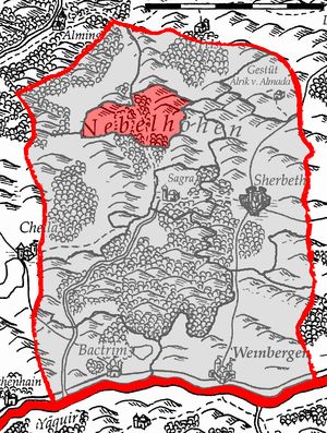 Das Weingut liegt inmitten der Nebelhöhen und ist von Sherbeth aus in kurzer Zeit erreichbar. Im Nordwesten grenzt es an das Junkergut Nymphensang, im Nordosten an das Junkergut Rocaroja und im Süden an die Eigenlande des Barons von Khabosa.