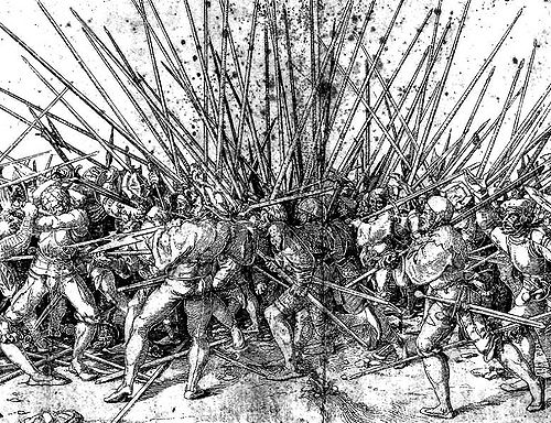 Die einzige Ausnahme, was die Akzeptanz von Prügelstrafen angeht, stellt das Verlassen der Formation dar. Insbesondere gegen die Reiterkrieger aus der Khôm ist die Sicherheit des Pikengevierts die beste Waffe, und wer, um einem Gegner nachzusetzen oder gar um Beute zu machen, die Formation verlässt und damit Lücken reißt, gefährdet nicht nur sein eigenes Leben, sondern auch das seiner Kameraden.