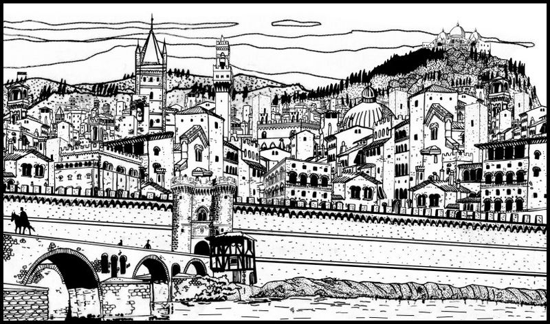 In Wahrheit war die Gilborns- und Eslamsstadt immer klientelären Spaltungen und Cliquenkämpfen innerhalb ihrer Regierung unterworfen. Schon in den Tagen als bosparanische Provinzhauptstadt stand Streit zwischen den führenden Familias und Parteiungen um Ämter, Macht und Einfluß auf der Tagesordnung und er wurde bis zuletzt - wenn es hart auf hart kam - mitunter auch blutig ausgetragen, ohne daß die politische Grundordnung der Stadt oder ganz Almadas dabei angetastet worden wäre.