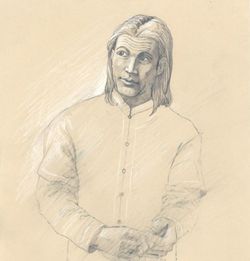 Ein schlanker Mann von etwas mehr als 40 Götterläufe, mit schulterlangen braunen Haar das mehr und mehr Ansätze von Grau zeigt, wachen und neugierigen braunen Augen. Obgleich seiner Erhebung in den almadanischen Adelsstand zog er es anfangs vor die ihm von früheren Tagen gewohnte bequeme Reisekleidung eines garethischen Kaufmanns zu tragen. Nach mittlerweile zahlreichen Götterläufe in seiner neuen almadanischen Heimat trägt er nun mit Vorliebe jene Mode die in der Capitale Punin präsentiert wird oder auch von anderen Mitgliedern der Nobleza gewählt wird. Selbst einen Caldabreser hat er sich zugelegt...