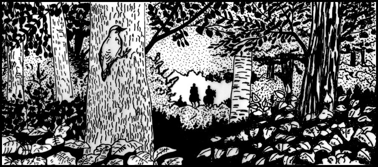 Neben einigen immer wieder zuwuchernden Waldpfaden ist der aus dem artesianischen Ratzingen kommende Karrenweg nach Endivarol an der Brigella die bedeutenste Wegverbindung quer durch den teils lichtdurchfluteten, teils beinahe ganztägig dunklen Wald, da er auch Dorf und Castillo Alming unter der Herrschaft des Reichsedlen Angrond von Freiwald sowie Kantor, den Hauptort und Vogtssitz von Thangolforst, miteinander verbindet. Dom Angrond residiert im 500-Seelen-Ort Kantor als Administrador des Grafen Gendahar.