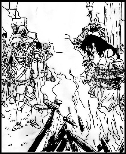 Die [[Bild:Hexenverbrennung.jpg|left|thumb|430px|Eine Hexenverbrennung zu Ragath]]Ägide der Priesterkaiser fand überall, besonders aber in den Annalen des Königreiches Almada, als Zeitalter der lodernden Scheiterhaufen Verewigung, was mit der Gründung der Suprema zu jener Zeit in engem Zusammenhang steht. Die Häscher der'' »Sonnengebieter«,'' der illuminierten Stauthalter der Heliodankaiser in der Lichtei Gilborns, zettelten gnadenlose Hetzjagden auf die sogenannten "Regenbogenechsen" an - auf die vom Volk geliebte Priesterschaft der Tsa, der man das Geheimnis der ewigen Jugend entreißen wollte, von dem man glaubte, daß sie es besäßen.<br>Später, nachdem Sonnengebieterin Praiana 'die Gleißende' die "Götzenbildnisse" der Rondra, des Efferd und des Ingerimm am berühmten [[Vierertempel von Brig-Lo]] hatte zerschlagen lassen, gesellte sich zur Verfolgung der Tsadiener auch noch die mit noch größerem Eifer vorangetriebene Verfolgung der sogenannten ''Achmad'sunni,'' der Amazonen des Bosquirtals, auf deren Häupter horrende Kopfgelder ausgelobt wurden.<br>Mit jedem erfolgreichen Schlag, den die Amazonen gegen die Herrschaft der Sonnengebieter führten, wuchs deren Zorn, der Rebellinnen nicht habhaft werden zu können. So befahl Sonnengebieter Narvan einen schlagkräftigen Gegenpart zum Orden der Amazonen zu gründen, vorzugsweise als eigenständigen almadanischen Ableger des ''Ordens der Göttlichen Kraft'', der hierzulande die Aufgabenstellung der heiligen Inquisition übernahm. Neben Rittern der Bannstrahler, in der Interrogatio erfahrenen Geweihten und gar einem leibhaftigen Greifenreiter gehörten von Anfang an auch zahlreiche ungeweihte Laienmitglieder und noch mehr inoffizielle Spitzel, Denunazianten und Zuträger zur Suprema. An allen oben genannten Standorten wurden sogenannte ''Bocca di Griffone'' angebracht - Denunziationsbriefkästen in Form eines Greifenmaules, in die jeder eine anonyme Anzeige eines jeden einwerfen konnte - und die Suprema geht bis heute ausnahmslos jeder eingeworfenen Anzeige nach!<br>Nach dem Friedensvertrag des Neuen Reiches mit den Königinnenreichen der Amazonen und einer von Rohal befohlenen, zähneknirschenden Entschuldigung bei der Kirche der Tsa, hat sich die Suprema heutzutage vollends auf die Verfolgung von Hexerei, schwarzer Magie und unerlaubter Wissenschaft beschränkt (obwohl dies viele ihrer Inquisitoren gerne zudem auf eine Verfolgung des Rastullah-Unglaubens | Die [[Bild:Hexenverbrennung.jpg|left|thumb|430px|Eine Hexenverbrennung zu Ragath]]Ägide der Priesterkaiser fand überall, besonders aber in den Annalen des Königreiches Almada, als Zeitalter der lodernden Scheiterhaufen Verewigung, was mit der Gründung der Suprema zu jener Zeit in engem Zusammenhang steht. Die Häscher der'' »Sonnengebieter«,'' der illuminierten Stauthalter der Heliodankaiser in der Lichtei Gilborns, zettelten gnadenlose Hetzjagden auf die sogenannten "Regenbogenechsen" an - auf die vom Volk geliebte Priesterschaft der Tsa, der man das Geheimnis der ewigen Jugend entreißen wollte, von dem man glaubte, daß sie es besäßen.<br>Später, nachdem Sonnengebieterin Praiana 'die Gleißende' die "Götzenbildnisse" der Rondra, des Efferd und des Ingerimm am berühmten [[Vierertempel von Brig-Lo]] hatte zerschlagen lassen, gesellte sich zur Verfolgung der Tsadiener auch noch die mit noch größerem Eifer vorangetriebene Verfolgung der sogenannten ''Achmad'sunni,'' der Amazonen des Bosquirtals, auf deren Häupter horrende Kopfgelder ausgelobt wurden.<br>Mit jedem erfolgreichen Schlag, den die Amazonen gegen die Herrschaft der Sonnengebieter führten, wuchs deren Zorn, der Rebellinnen nicht habhaft werden zu können. So befahl Sonnengebieter Narvan einen schlagkräftigen Gegenpart zum Orden der Amazonen zu gründen, vorzugsweise als eigenständigen almadanischen Ableger des ''Ordens der Göttlichen Kraft'', der hierzulande die Aufgabenstellung der heiligen Inquisition übernahm. Neben Rittern der Bannstrahler, in der Interrogatio erfahrenen Geweihten und gar einem leibhaftigen Greifenreiter gehörten von Anfang an auch zahlreiche ungeweihte Laienmitglieder und noch mehr inoffizielle Spitzel, Denunazianten und Zuträger zur Suprema. An allen oben genannten Standorten wurden sogenannte ''Bocca di Griffone'' angebracht - Denunziationsbriefkästen in Form eines Greifenmaules, in die jeder eine anonyme Anzeige eines jeden einwerfen konnte - und die Suprema geht bis heute ausnahmslos jeder eingeworfenen Anzeige nach!<br>Nach dem Friedensvertrag des Neuen Reiches mit den Königinnenreichen der Amazonen und einer von Rohal befohlenen, zähneknirschenden Entschuldigung bei der Kirche der Tsa, hat sich die Suprema heutzutage vollends auf die Verfolgung von Hexerei, schwarzer Magie und unerlaubter Wissenschaft beschränkt (obwohl dies viele ihrer Inquisitoren gerne zudem auf eine Verfolgung des Rastullah-Unglaubens ausgeweitet sähen). | ||